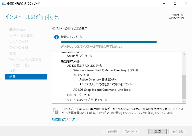 インストールが正常に終わった場合。この後、このWindowsマシンをAdministratorアカウントでドメインに参加させます。