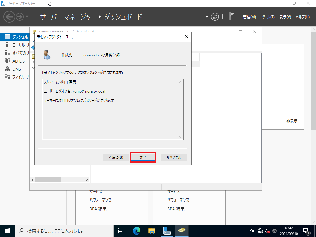 Active Directory構築の➀~③で設定は終了しましたが、意図した設定の通りに動作するのか、検証を行います。今回はクライアントPCを使用します。
