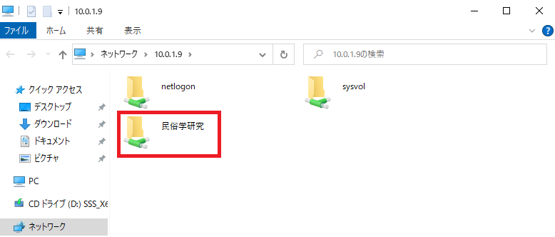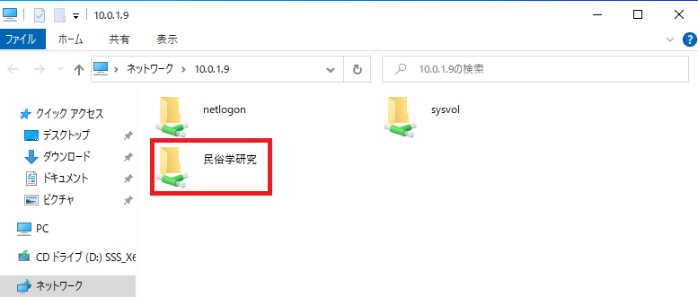 (42)(11)と同じ方法でサーバーの共有フォルダにアクセス後、「民俗学研究」をダブルクリックします。