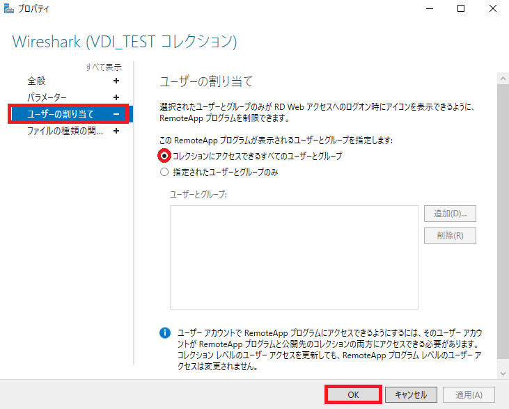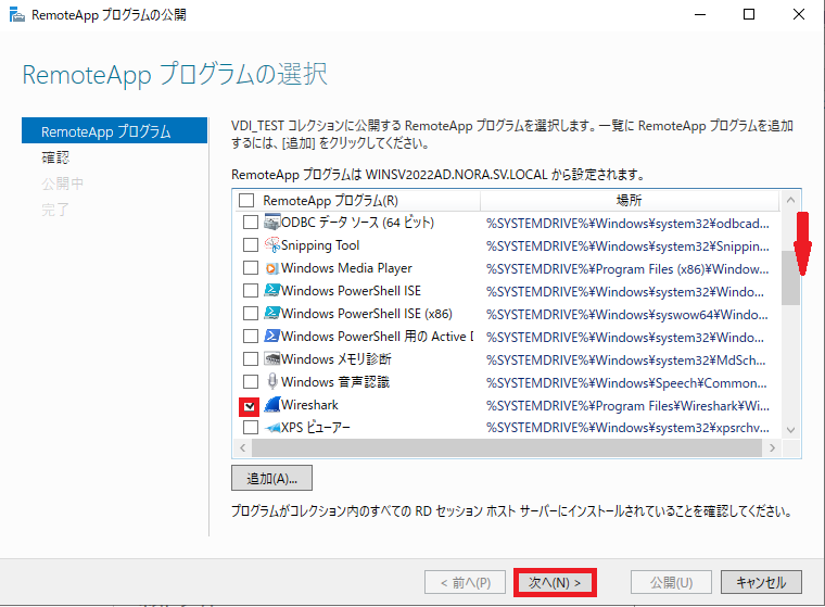 *remoteapplicationprogramはRemoteAPPで使用するプログラムの起動ファイルのVDIサーバーの設置場所をフルパスで入力します。