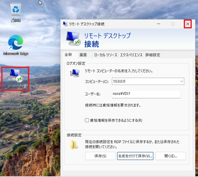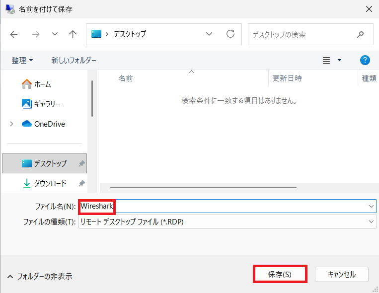 ⑷RDPファイルに任意のファイル名(例:Wireshark)を入力し、デスクトップに保存します。