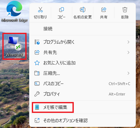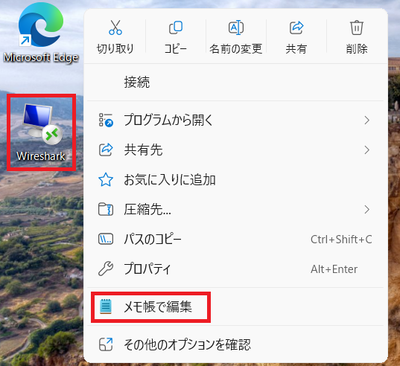 ⑹作成したRDPファイルを右クリックし「メモ帳で編集」をクリック。