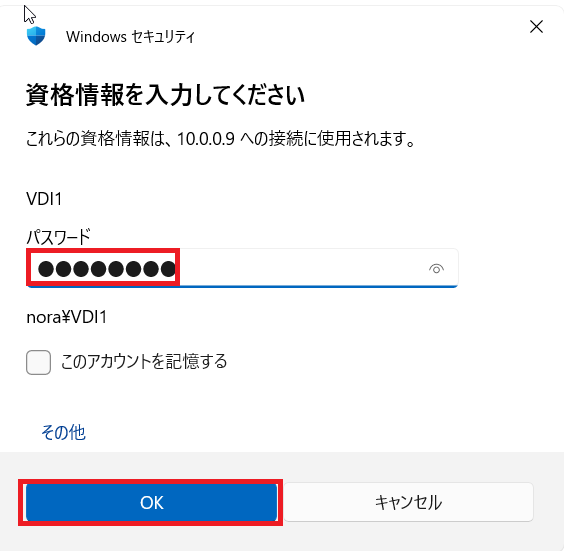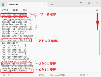 username:s:nora\VDI ←入力したユーザー名であることを確認。
