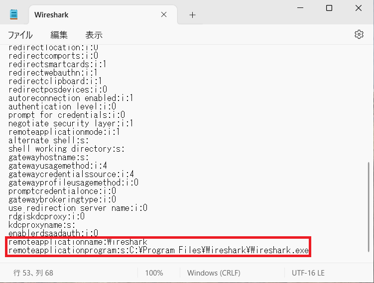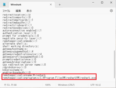 remoteapplicationprogram:s:C\Program Files\Wireshark\Wireshark.exe