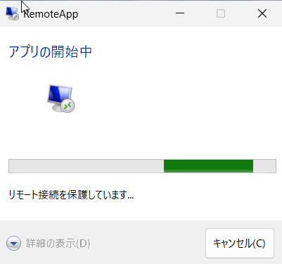 *⑵⑶で設定した内容であることが確認出来ます。リモートデスクトップ起動時にはこれらを入力せず直接テキストファイルに記述する方法もあります。