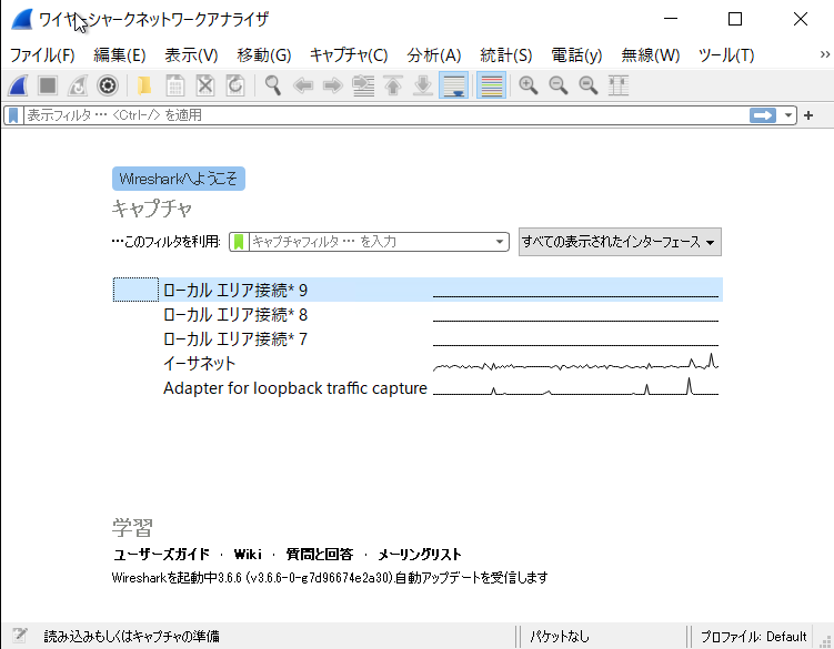 ⒀Wiresharkが起動しました。