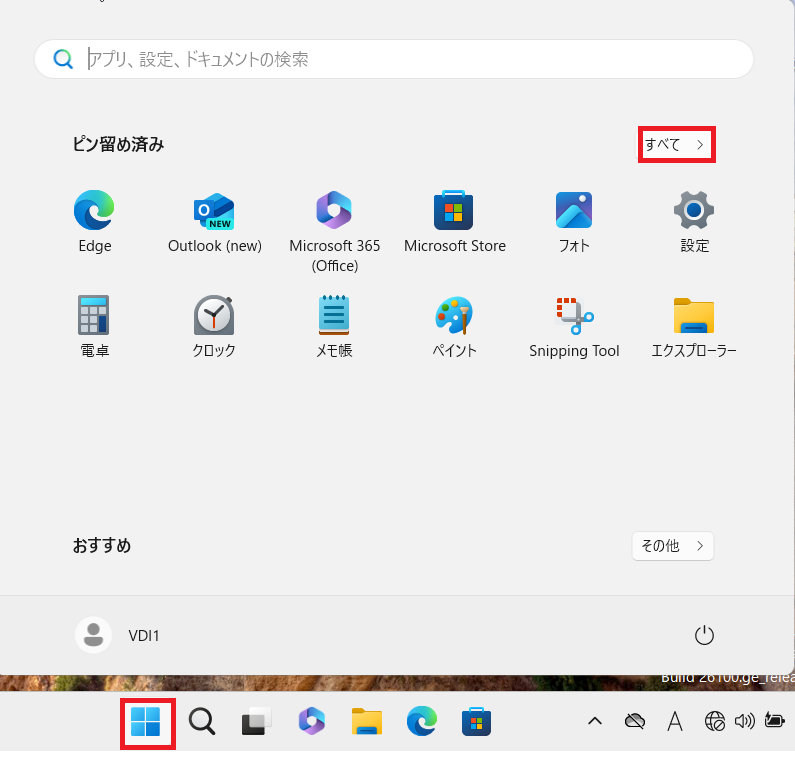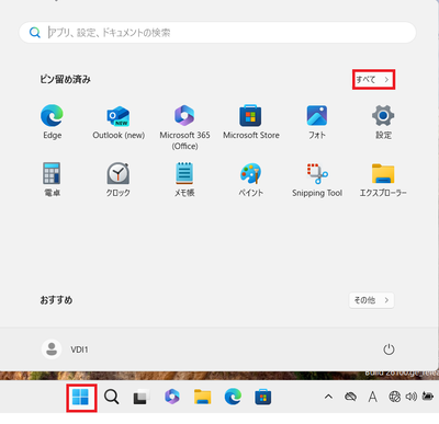 ⑴スタートボタンをクリックし、「すべて」をクリック。