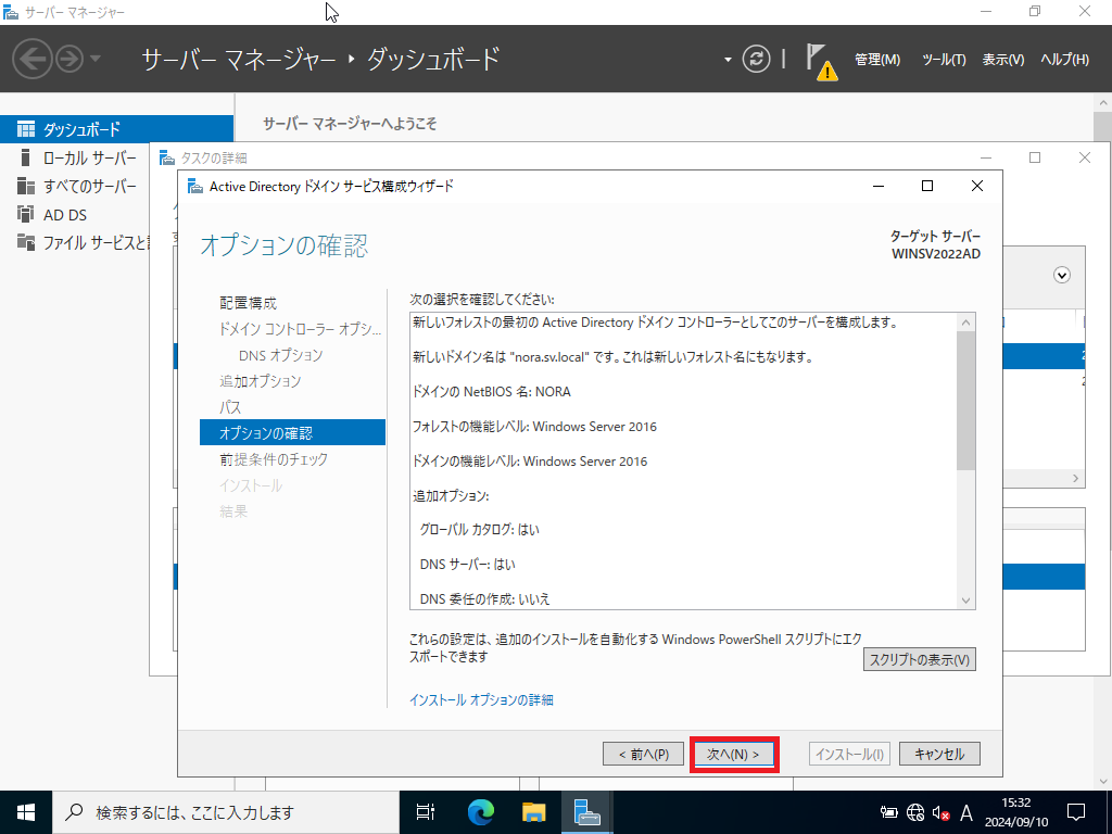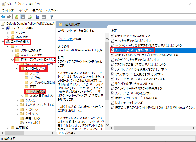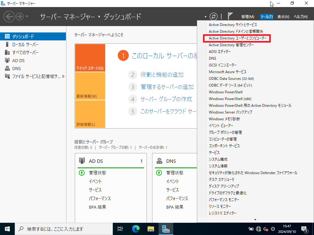 Active Directory構築の➀~③で設定は終了しましたが、意図した設定の通りに動作するのか、検証を行います。今回はクライアントPCを使用します。