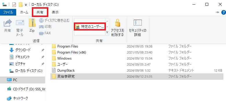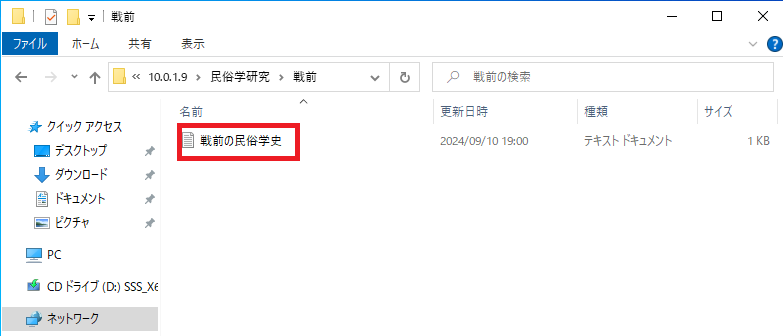 (42)(11)と同じ方法でサーバーの共有フォルダにアクセス後、「民俗学研究」をダブルクリックします。