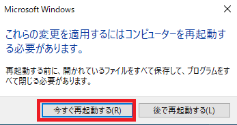 ⑻上記メッセージを確認後、「今すぐ再起動する」をクリックします。